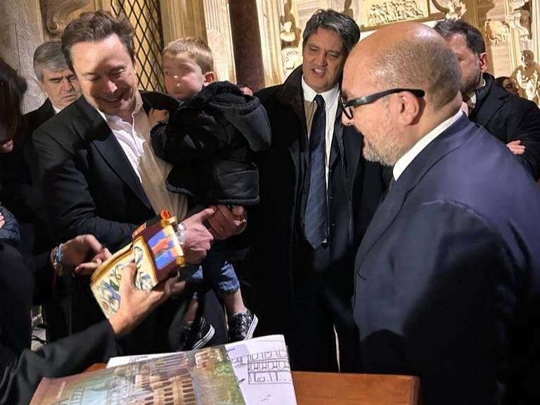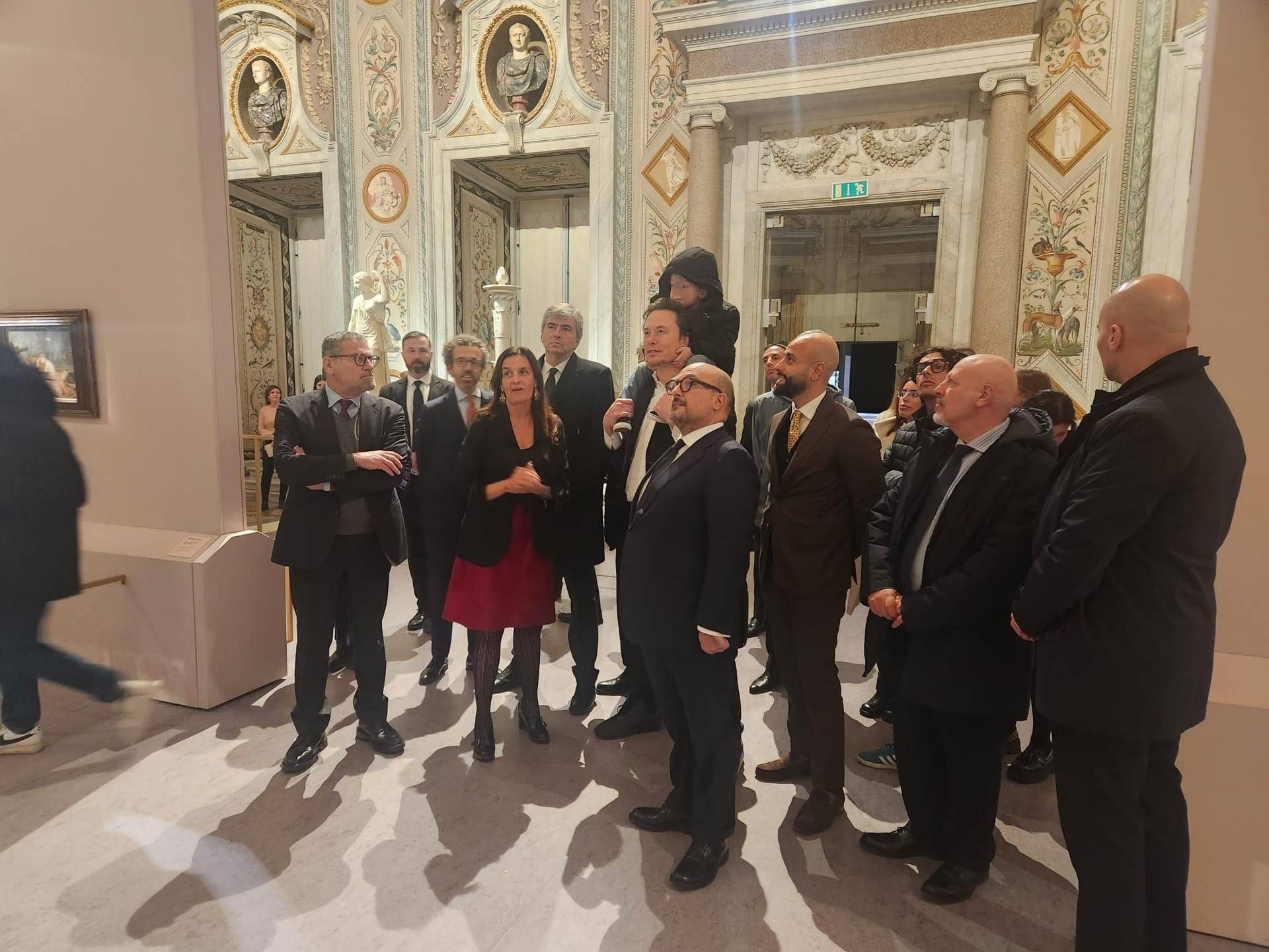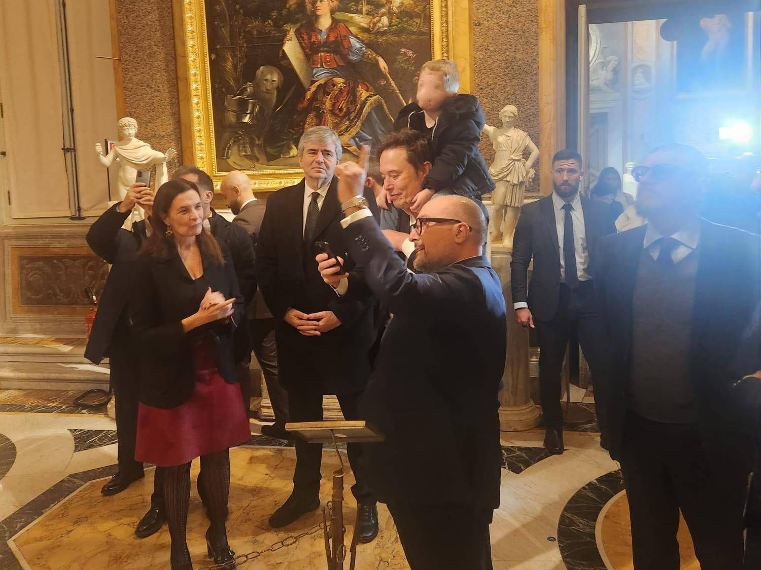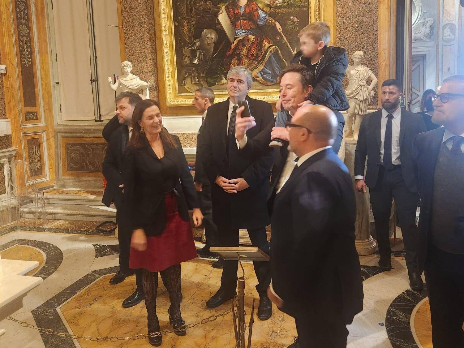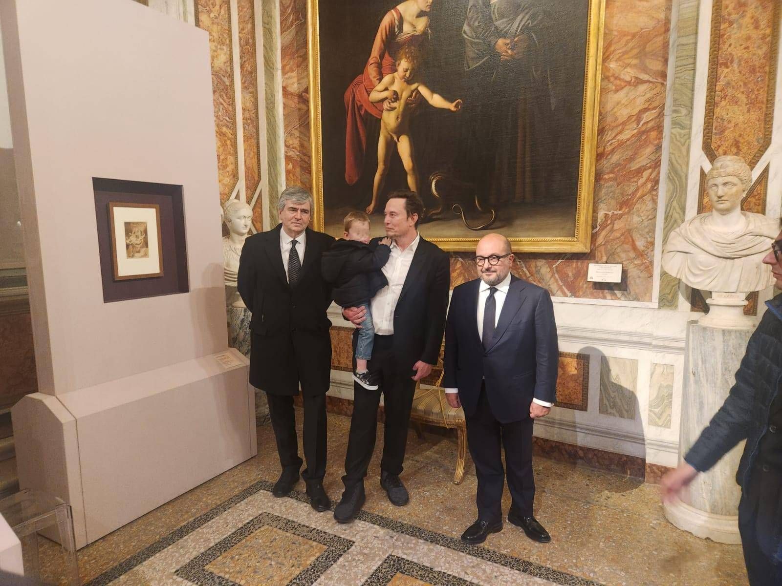 Musk fa il turista: visita alla Galleria Borghese col bimbo sulle spalle