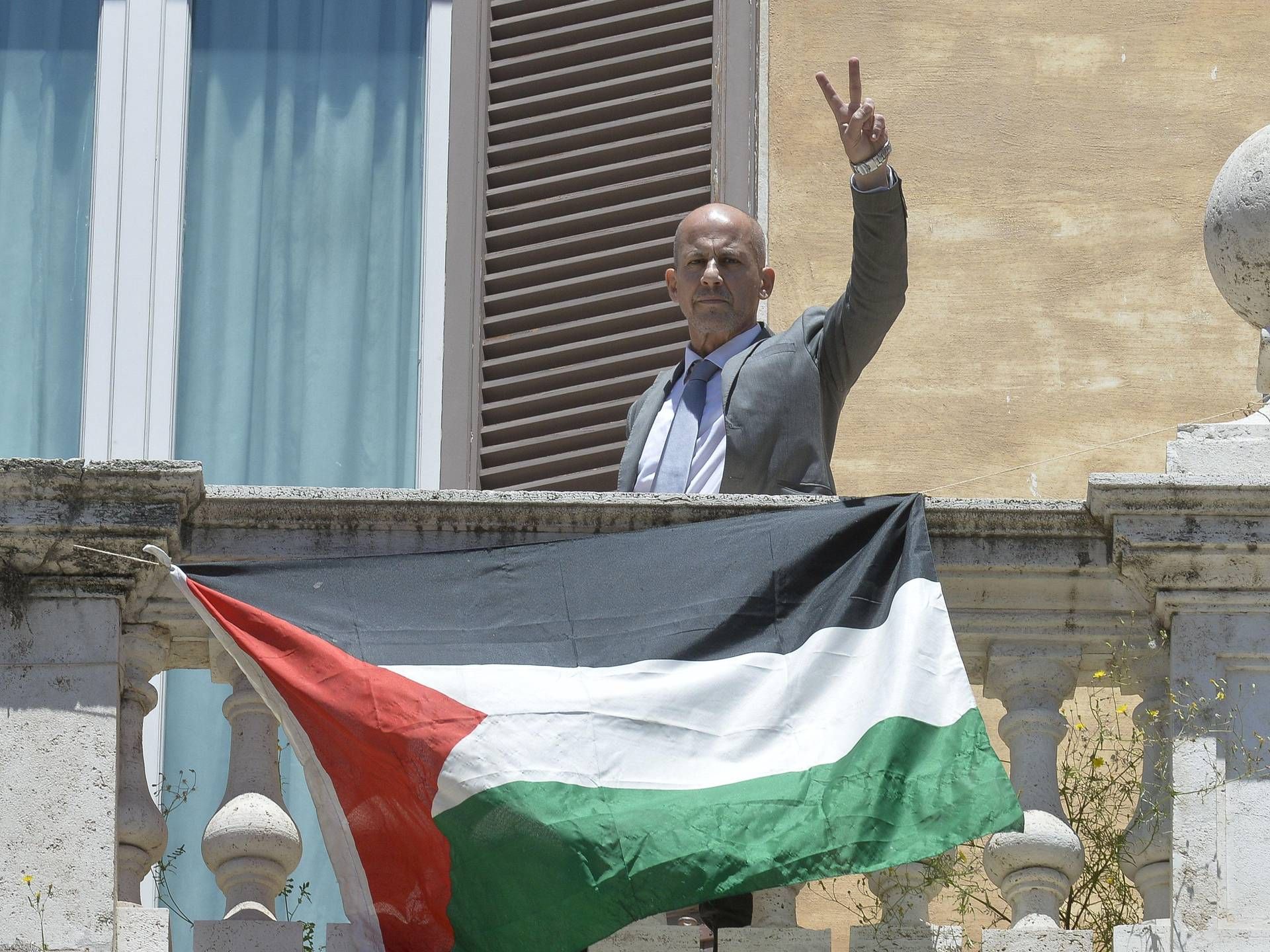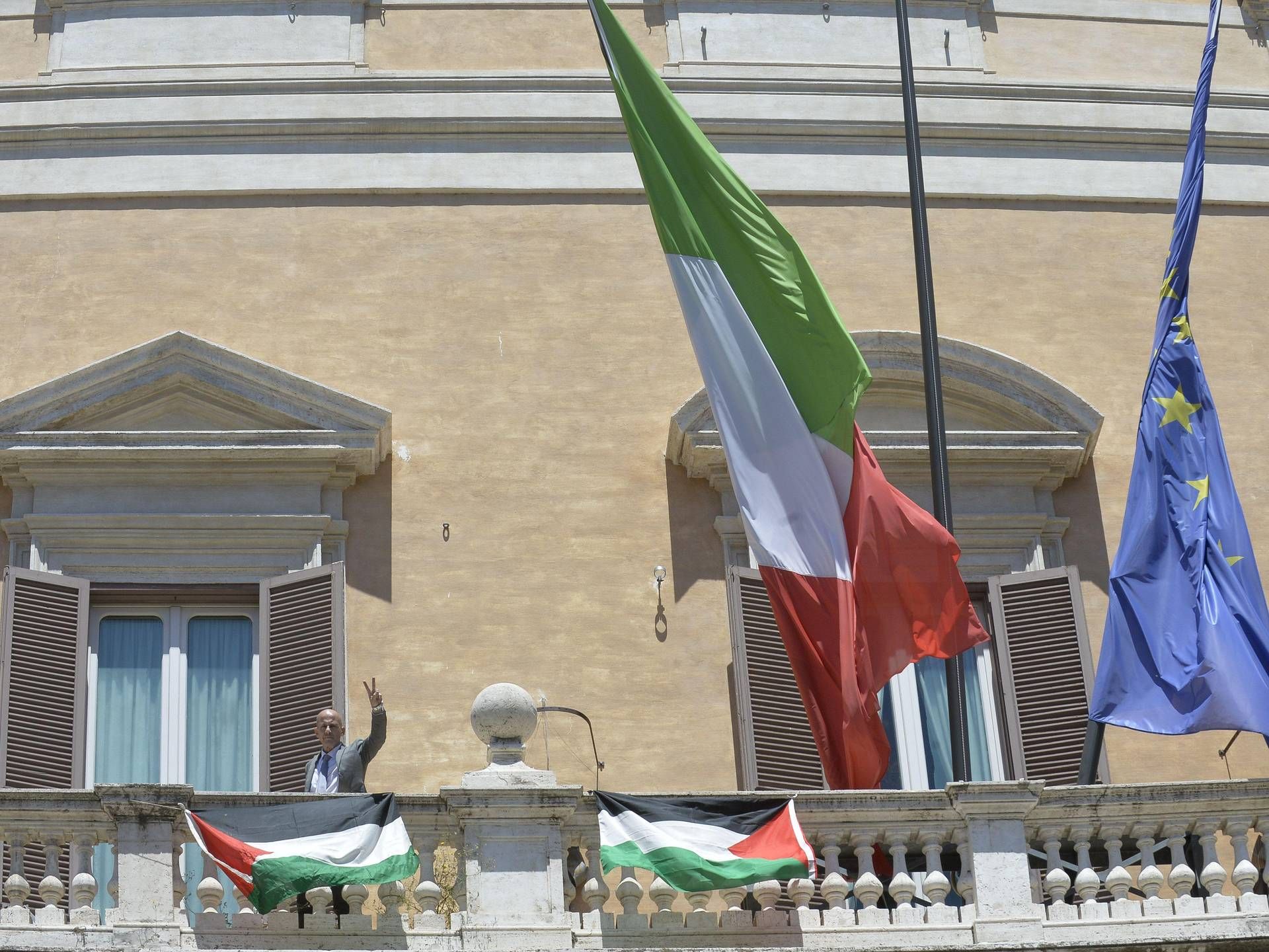Blitz dell'ex parlamentare dei Verdi Stefano Apuzzo questa mattina alla Camera dove dal balcone ha esposto due bandiere della Palestina. Un'azione dimostrativa con un vero e proprio blitz, spiega Apuzzo, per "dare una sveglia alle istituzioni e al governo italiano". Le bandiere sono state rimosse dai commessi della Camera.